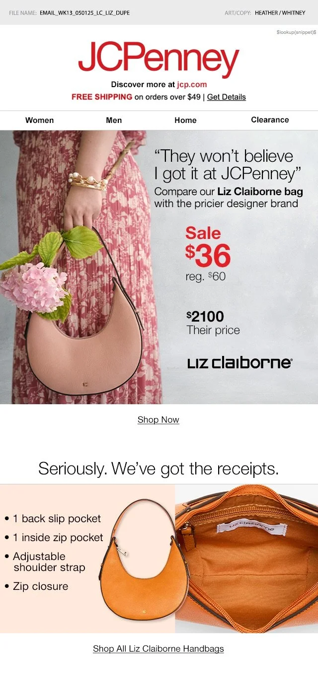 Sent to our Brand Standard customer, we developed a series of product dupes and compared our price to designer brand prices. We saw a 18% increase in clicks, and the email series continues to perform well.